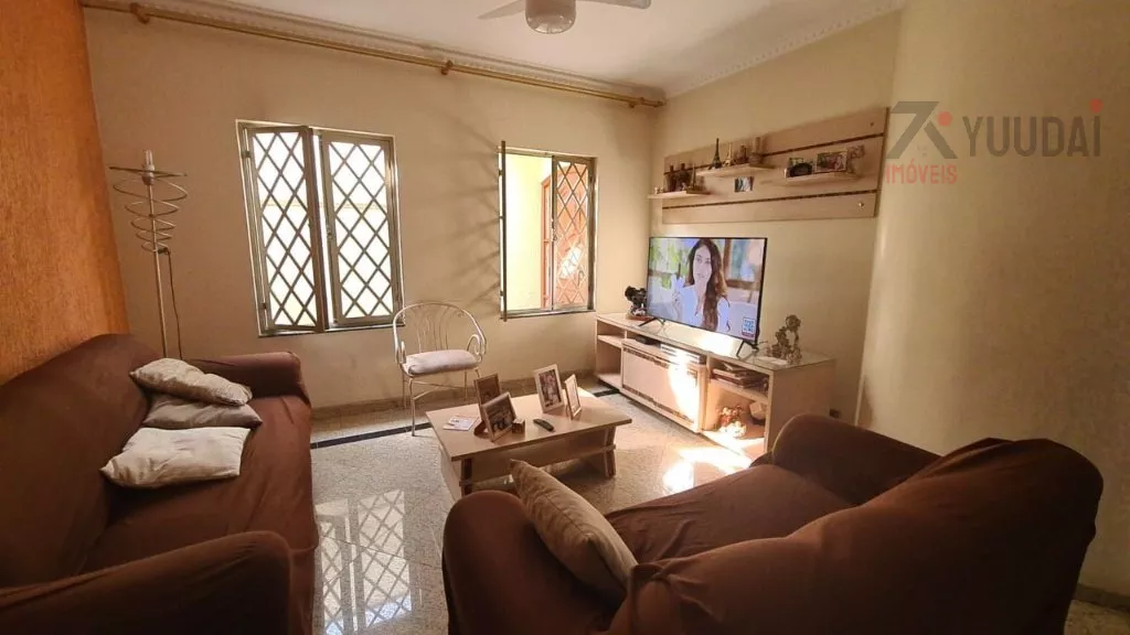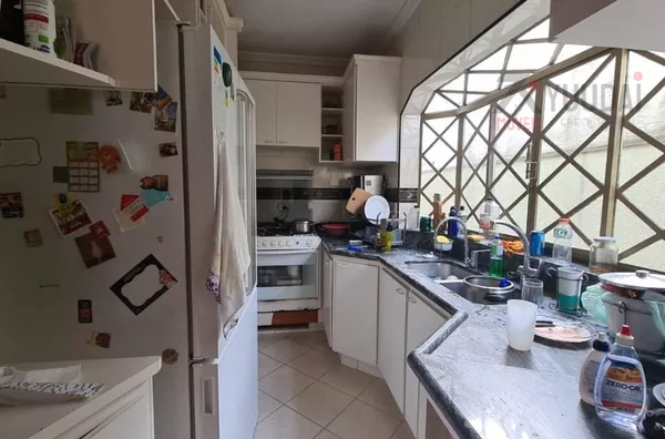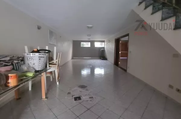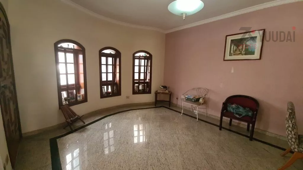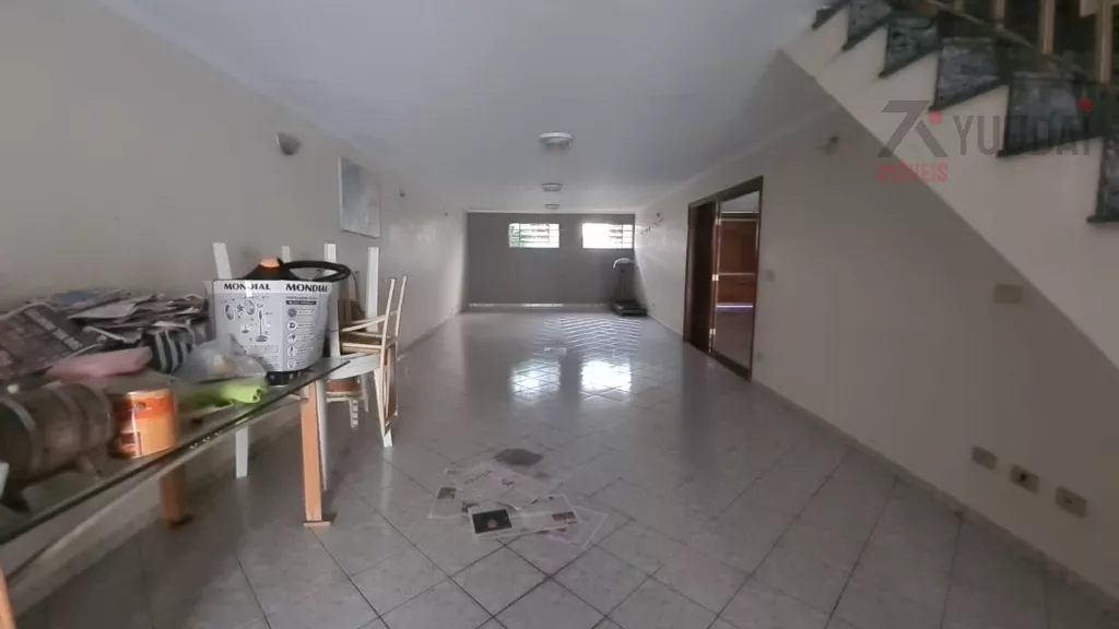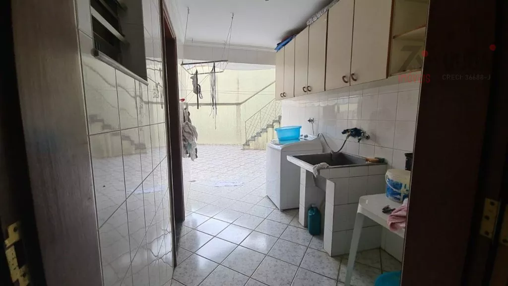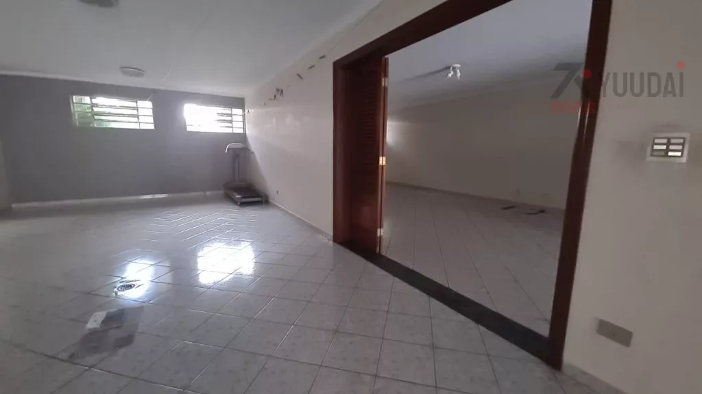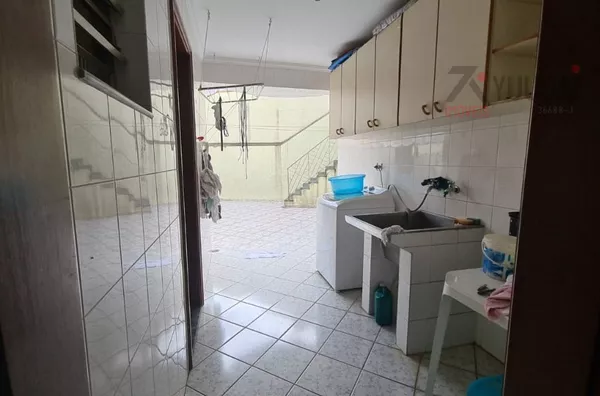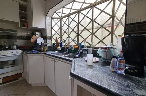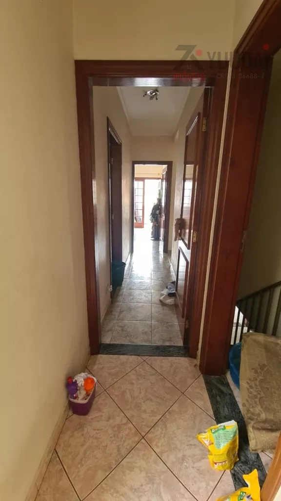 Acomodações: 4 dormitórios, sendo 1 suíte com banheira, 3 salas, 4 banheiros, cozinha com armários, área de serviço, quarto de empregada com banheiro, salão de festas, churrasqueira, quintal, corredor lateral