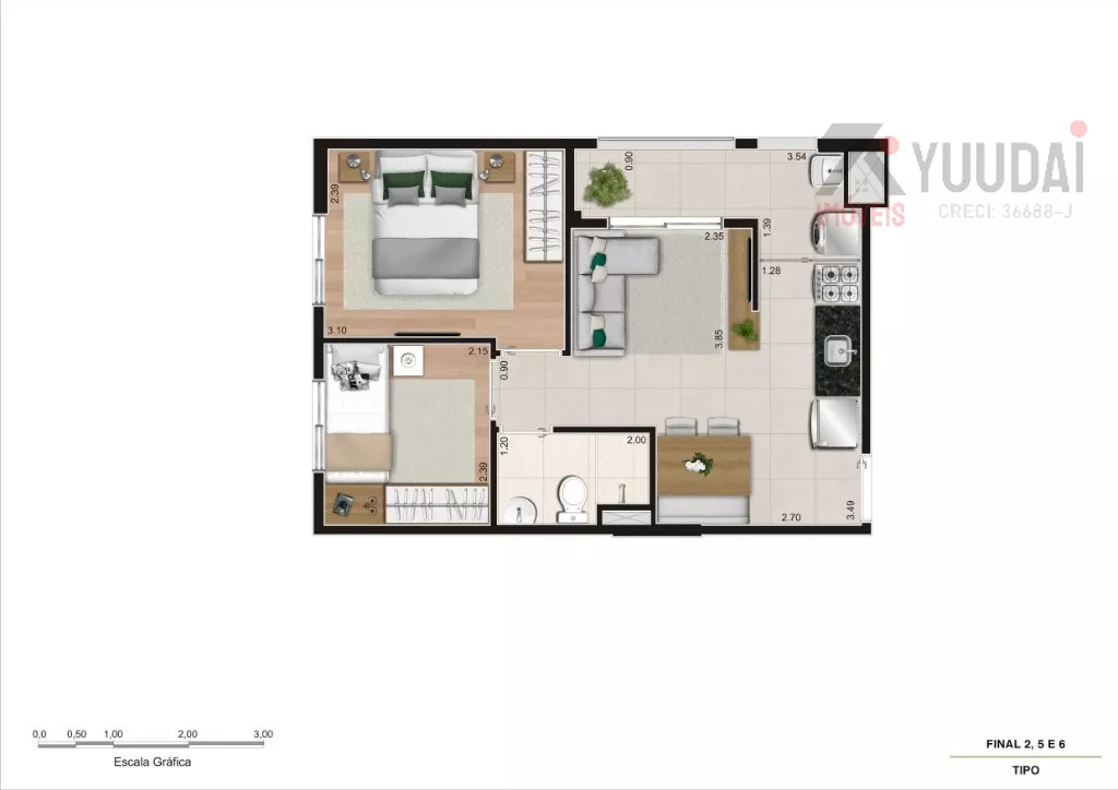 Disponível UNIDADES com 1 e 2 dormitórios com sacada, sala, cozinha, área de serviço conjugada e 1 banheiro.