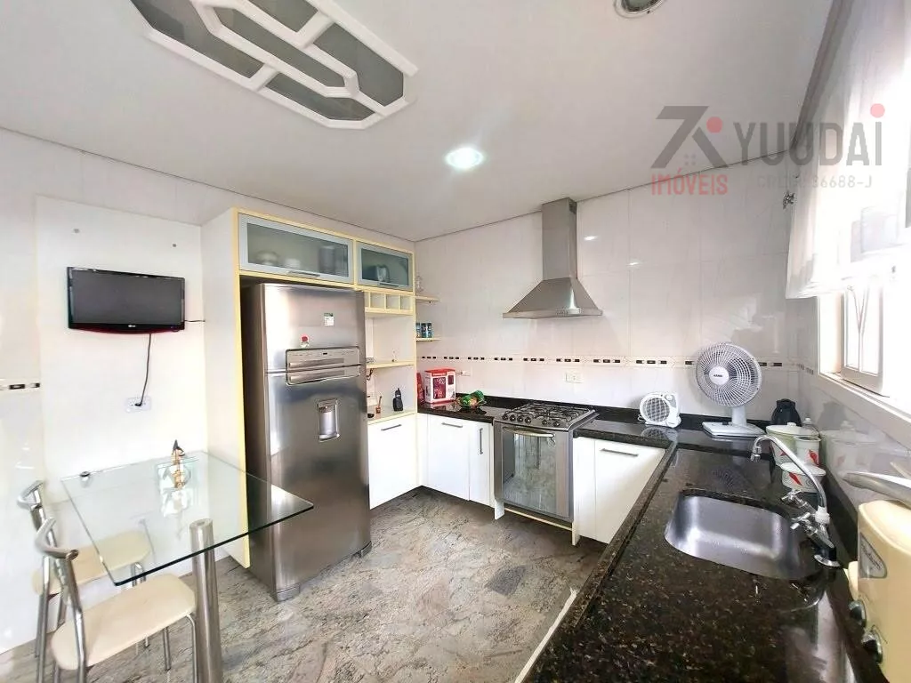 Cozinha ampla com móveis planejados e TV, incluindo copa, perfeita para preparar suas refeições com praticidade.