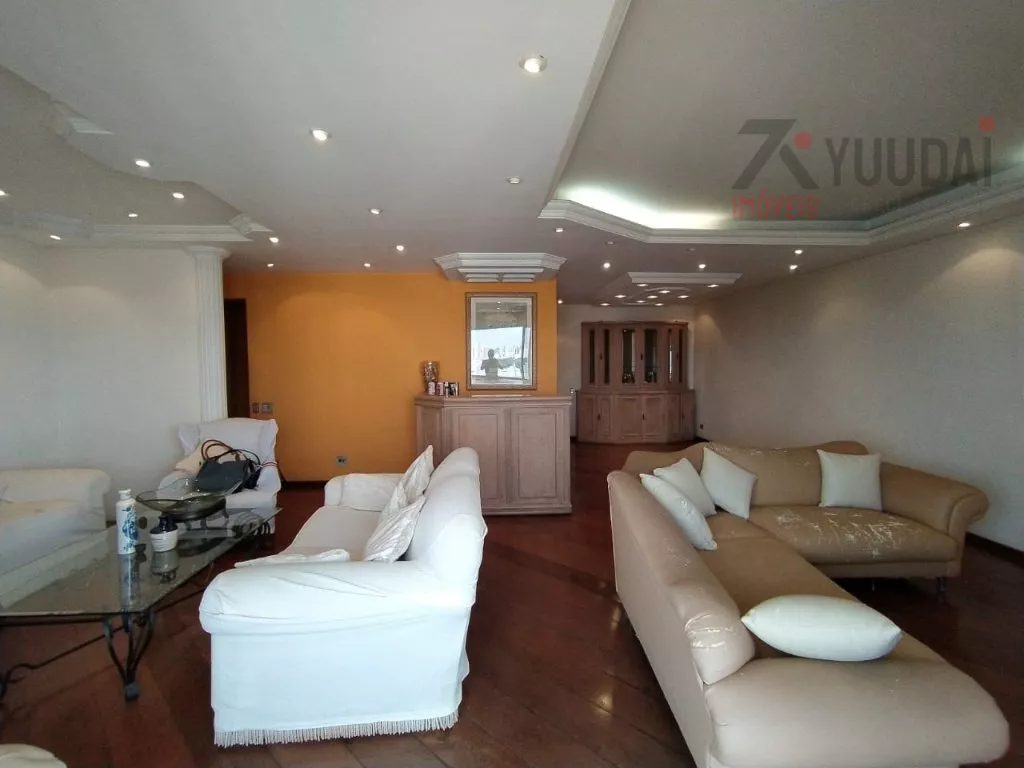4 DORMITÓRIOS, SENDO 3 SUÍTES, 1 DORMITÓRIO DE EMPREGADA COM BANHEIRO, 3 CLOSETS, 1 BANHEIRO SOCIAL, 1 LAVABO, COZINHA, SALA 2 AMBIENTES, SALA COM LAREIRA, SALA DE JANTAR, ÁREA DE SERVIÇO, 3 VAGAS DE GARAGEM, 1 DEPÓSITO NA GARAGEM E 5 SACADAS.